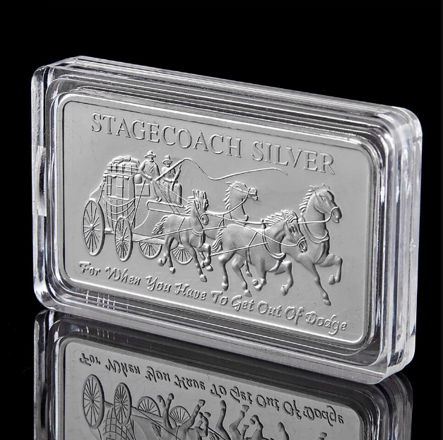 Stagecoach Silver bars are an interesting Silver bullion barter product marketed to the survivalist.